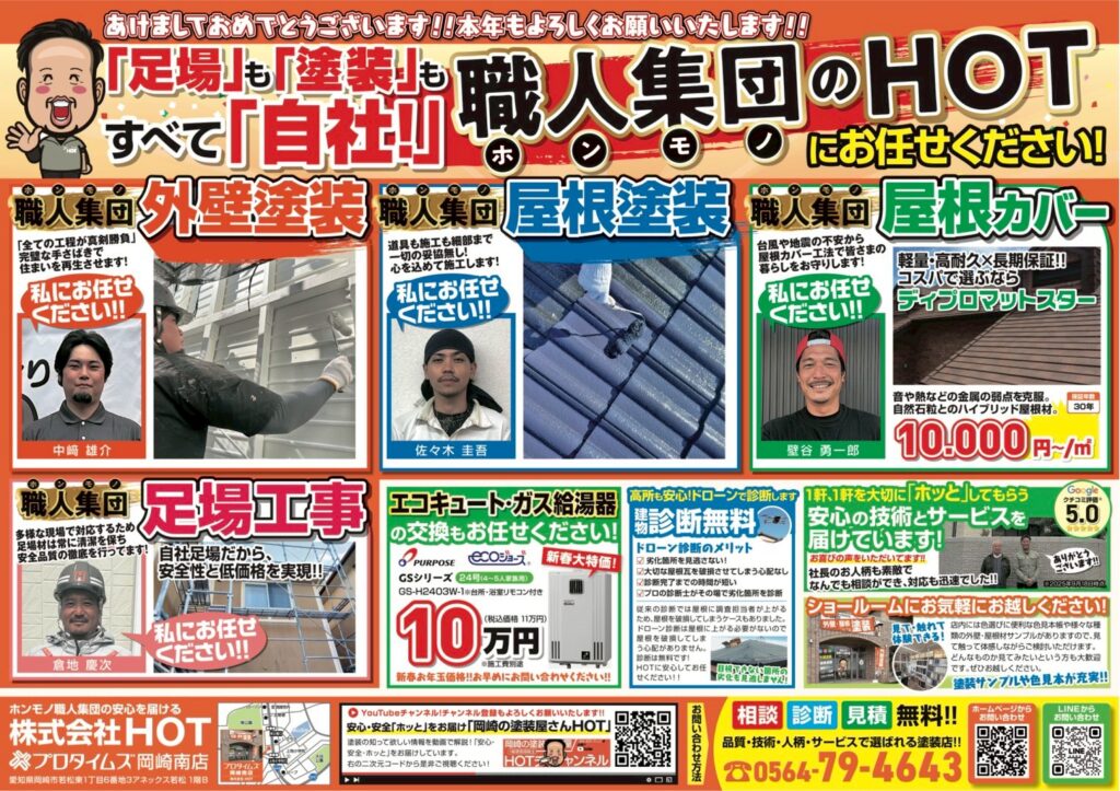 新春チラシでは、HOTが得意とする工事内容も詳しくご紹介しています。