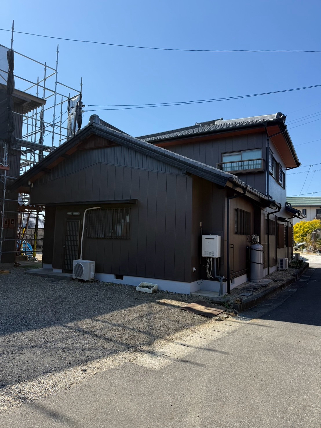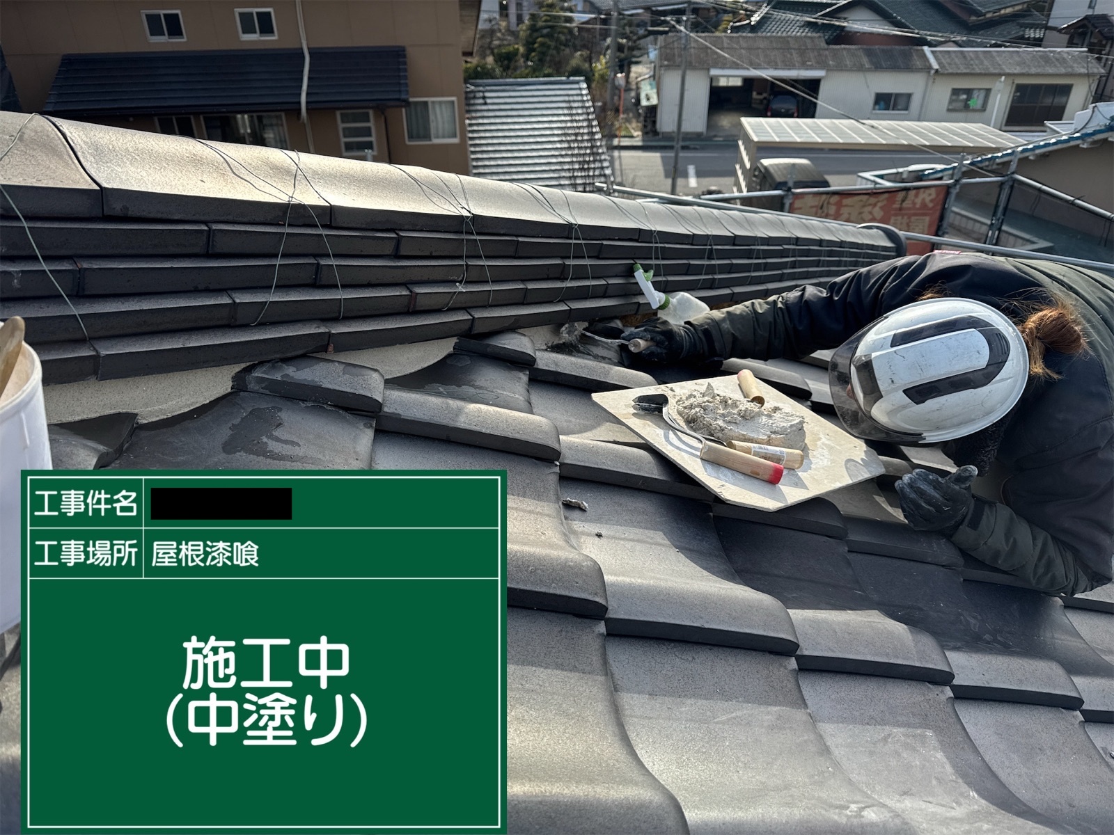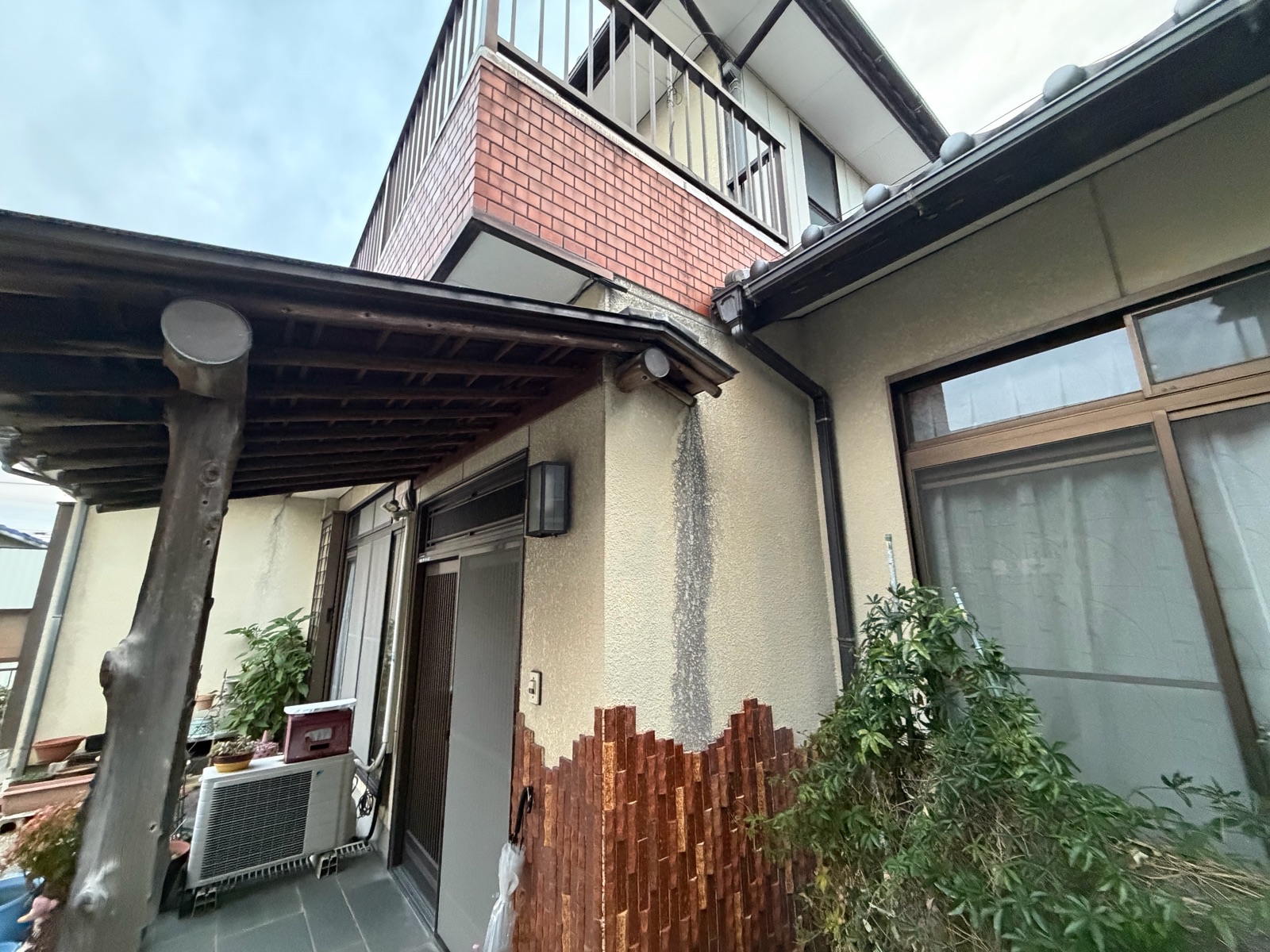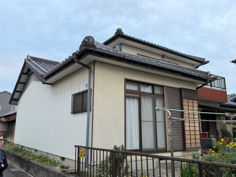 調査の結果、屋根の漆喰劣化が原因と判明したため、漆喰工事と併せて外壁塗装を実施。隣接する奥様のお仕事場も一緒に塗り替え、全体の美観を高めました。