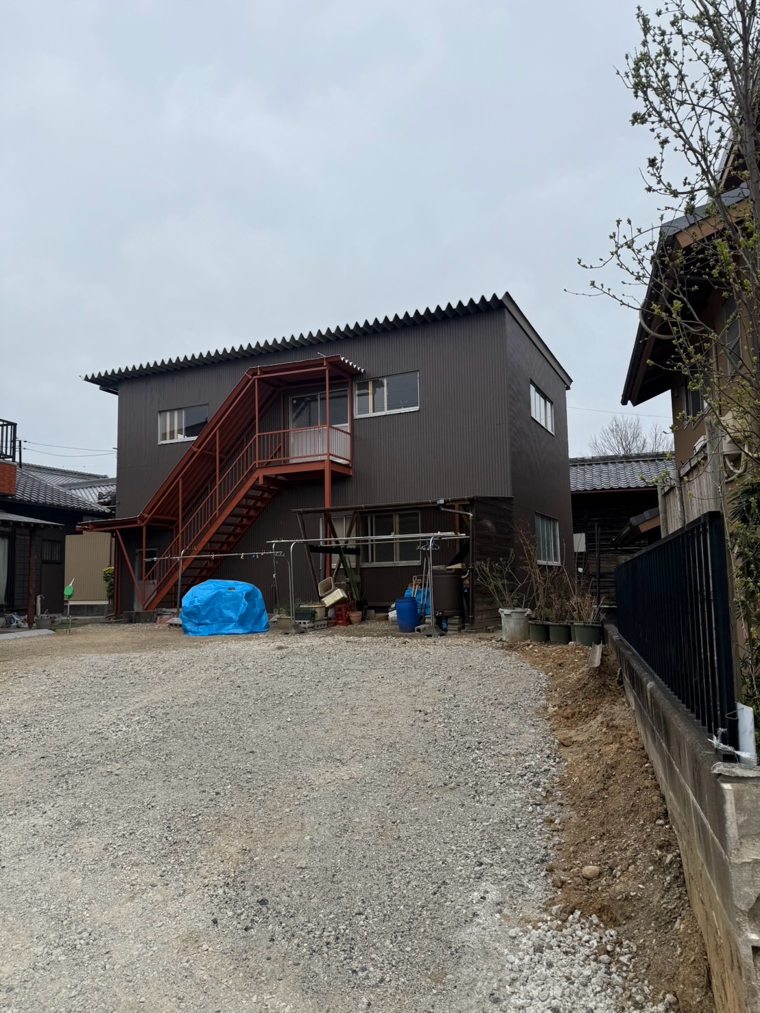 | 使用塗料1 | 外壁/メイン 上塗り塗材:スーパーセランソフィア 色:8074アイアンバーグ 外壁/タイル面 上塗り塗材:スーパーセランソフィア 色:スレートグレー |